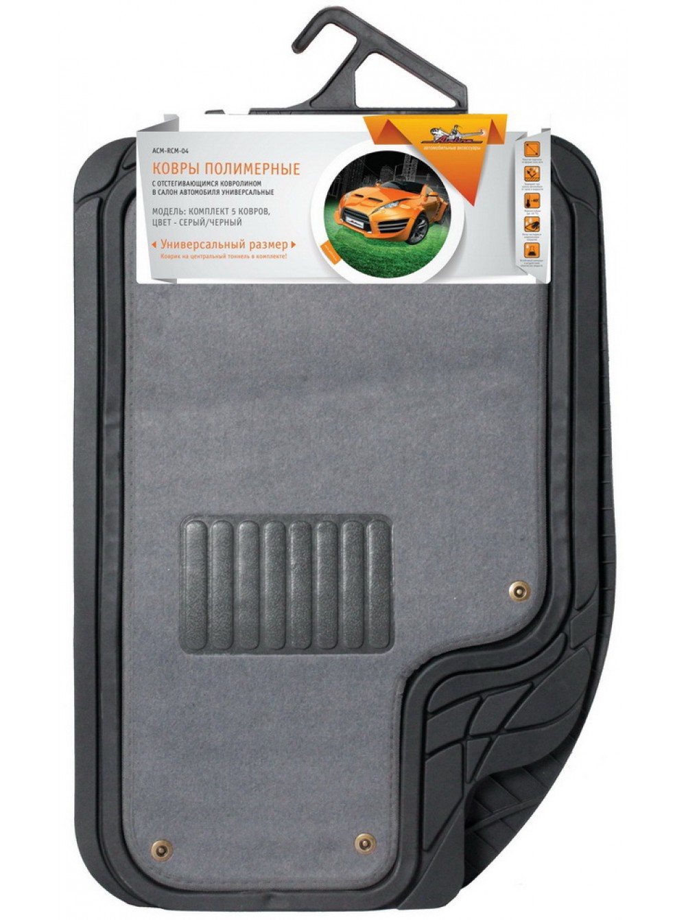Коврики автомобильные "универсальные" 5 шт, полимерные с отстегивающимся ковролином, серый/черный,компл.