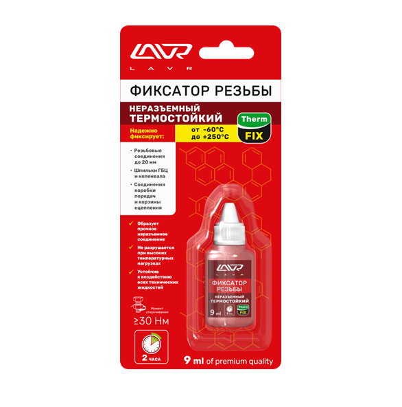 LAVR - фиксатор резьбы неразъемный "Термостойкий" (9мл) 1732, шт