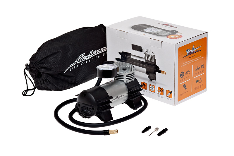 Рекомендуется использовать для легковых автомобилей и велосипедных шин. Благодаря новейшим технологиям в поршневой системе и механизму, выполненному полностью из металла, компрессор работает без перерыва до 20 мин. Оснащён быстросъемным наконечником, универсальным накидным патроном и двушкальным манометром. Для удобного хранения укомплектован сумкой.