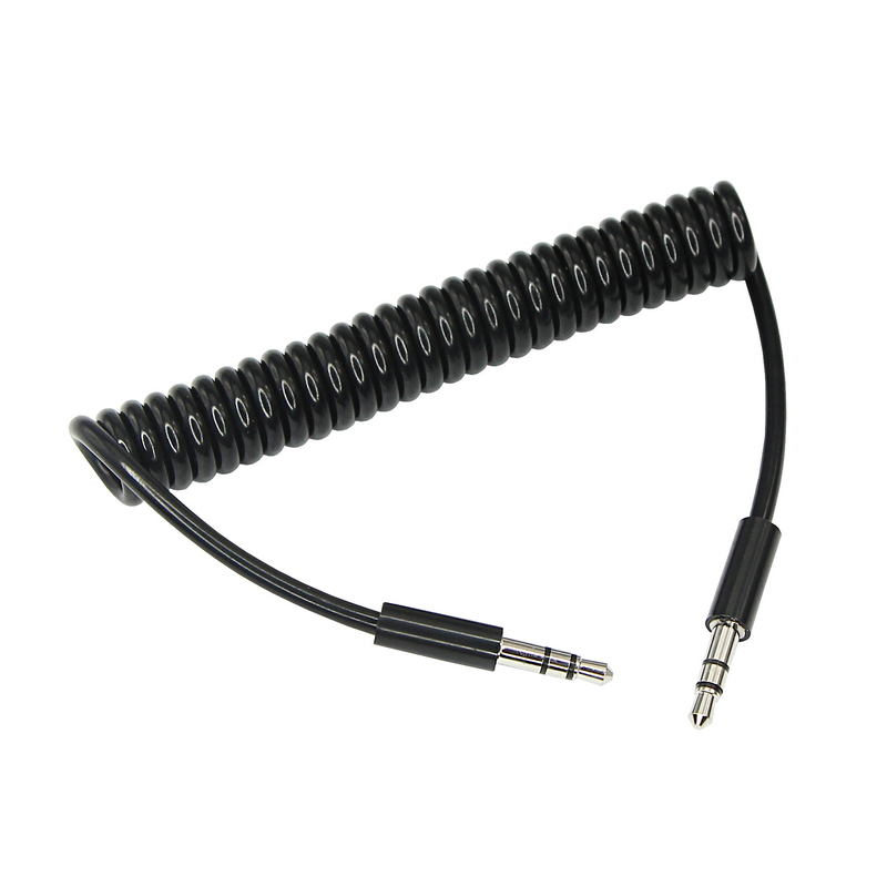 Аудио кабель 3,5мм 1м AUX шнур спираль Черный, шт