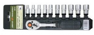 Набор головок торцевых 11предм. ДТ 6-гр. с трещоткой 1/4" 4,5,6,7,8,9,10,11,12,13