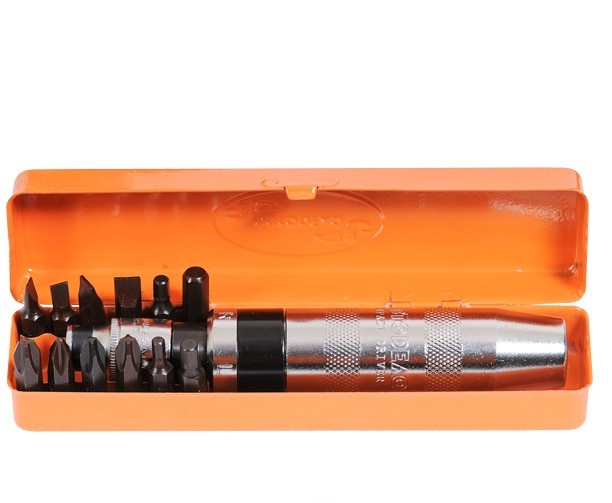 Отвертка ударная 12предметов АвтоДело Professional с набором бит металлический кейс - ударная отвертка с набором бит для профессионального использования. Механизм поворота и насадки изготовлены из инструментальной стали S2, что значительно увеличивает надёжность и долговечность изделия. Имеет присоединительный квадрат 1/2 (12.5 мм). Укомплектована переходной головкой с квадрата 1/2 на шестигранник 8 мм для присоединения вставок. Поставляется с двенадцатью насадками длиной 36 мм с крестовым, шлицевым и шестигранным рабочим профилем. Упакована в металлический кейс. Защищена от коррозии хромированием.