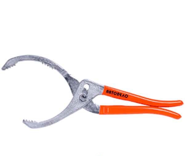 Съемник масляного фильтра 60-90мм АвтоДело зажим - съёмники масляного фильтра, который имеет переставную шарнирную конструкцию. Рабочие захваты с насечкой для надёжного захвата масляных фильтров. Рукоятки съёмников с резиновым покрытием обеспечивает снижение давления на ладонь и предотвращает проскальзывание.