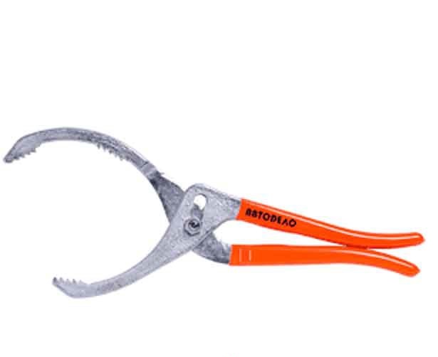 Съемник масляного фильтра 85-115мм АвтоДело зажим - съёмники масляного фильтра, который имеет переставную шарнирную конструкцию. Рабочие захваты с насечкой для надёжного захвата масляных фильтров. Рукоятки съёмников с резиновым покрытием обеспечивает снижение давления на ладонь и предотвращает проскальзывание.